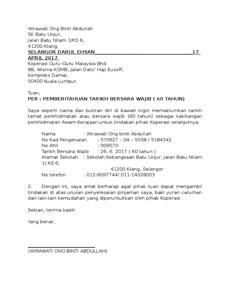Contoh surat mohon bersara pilihan involve some pictures that related.